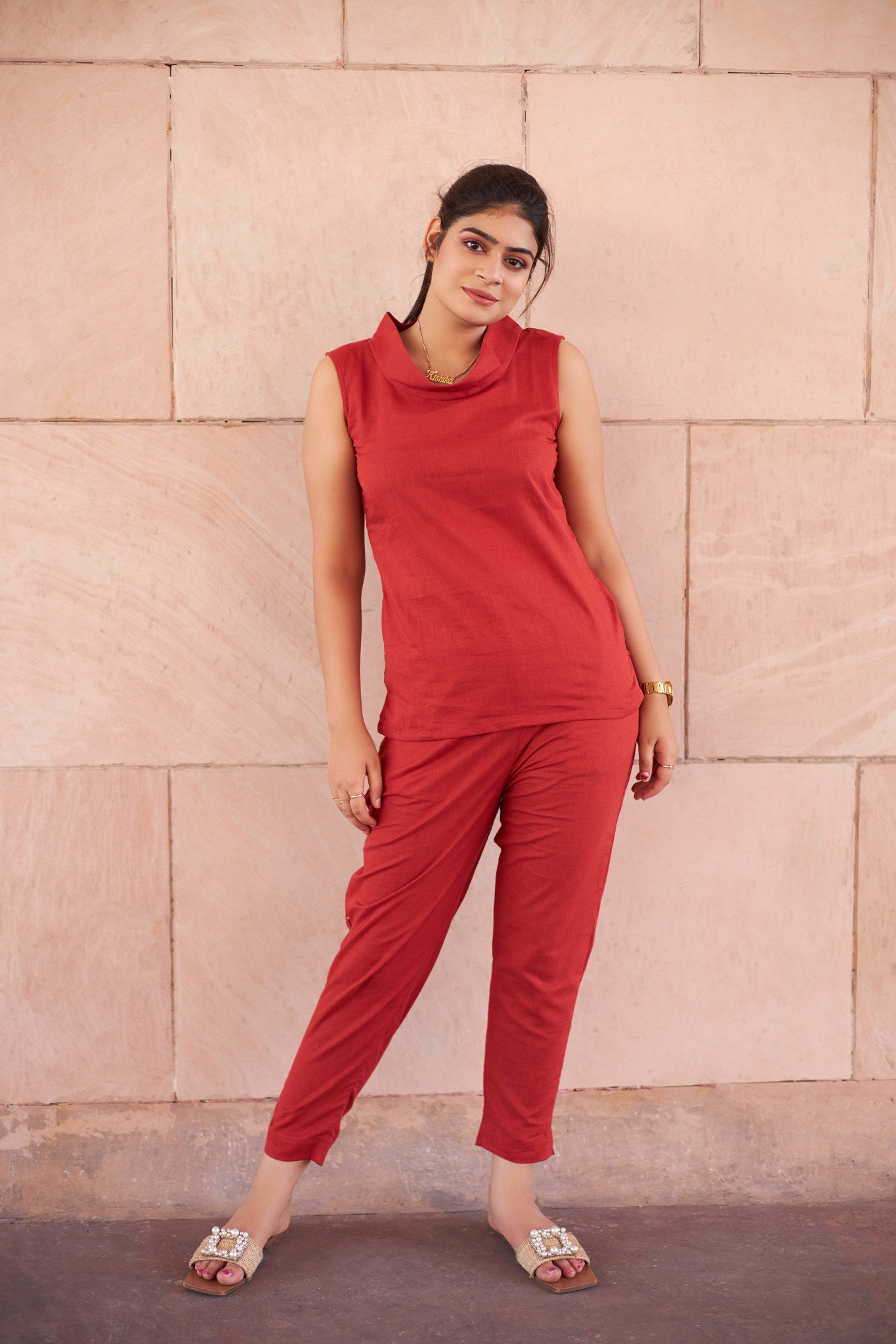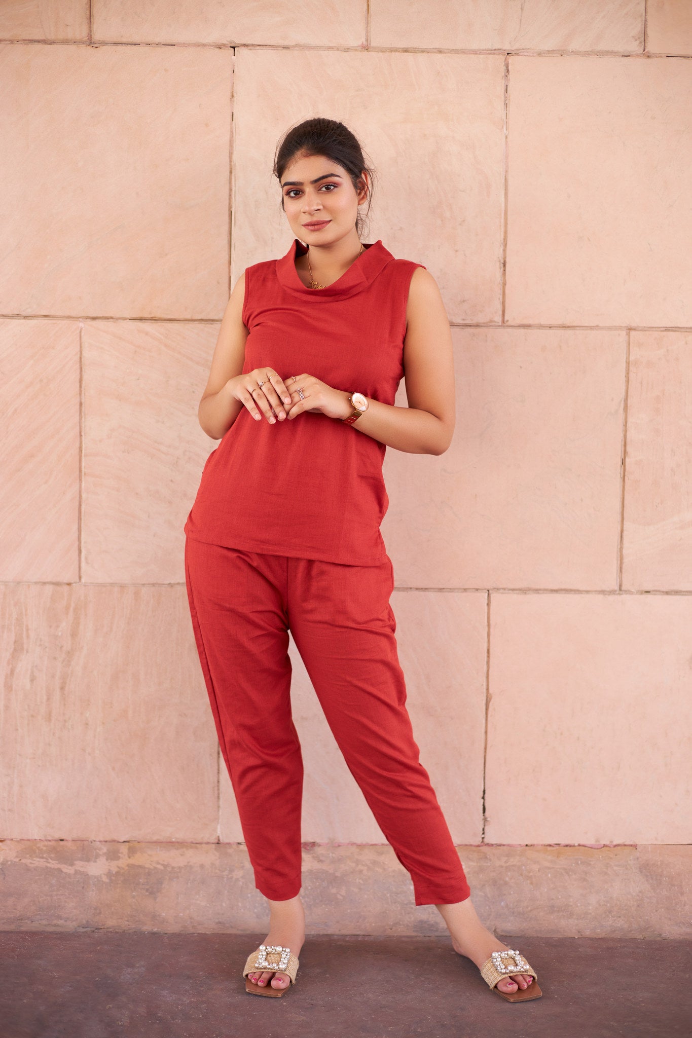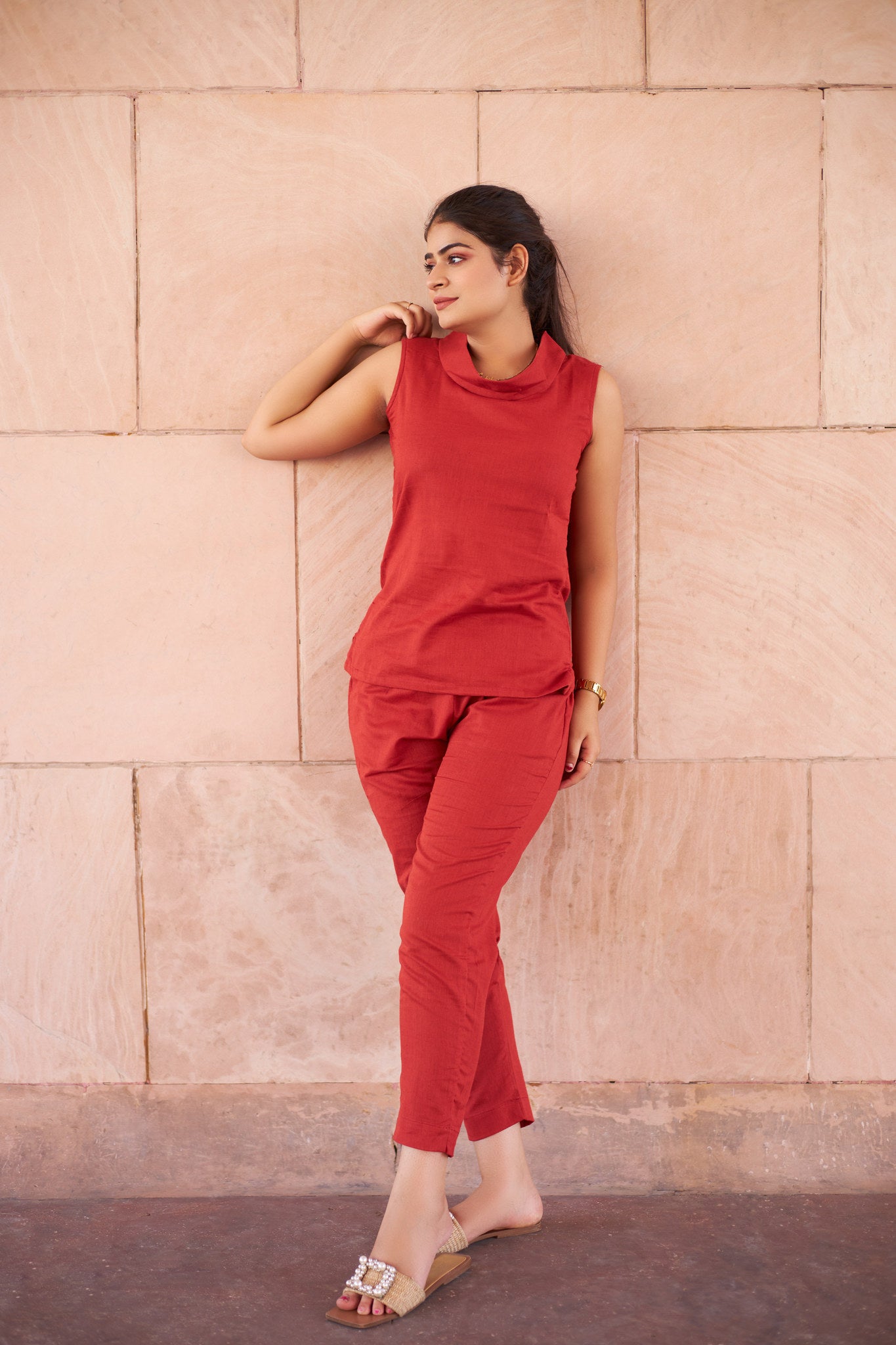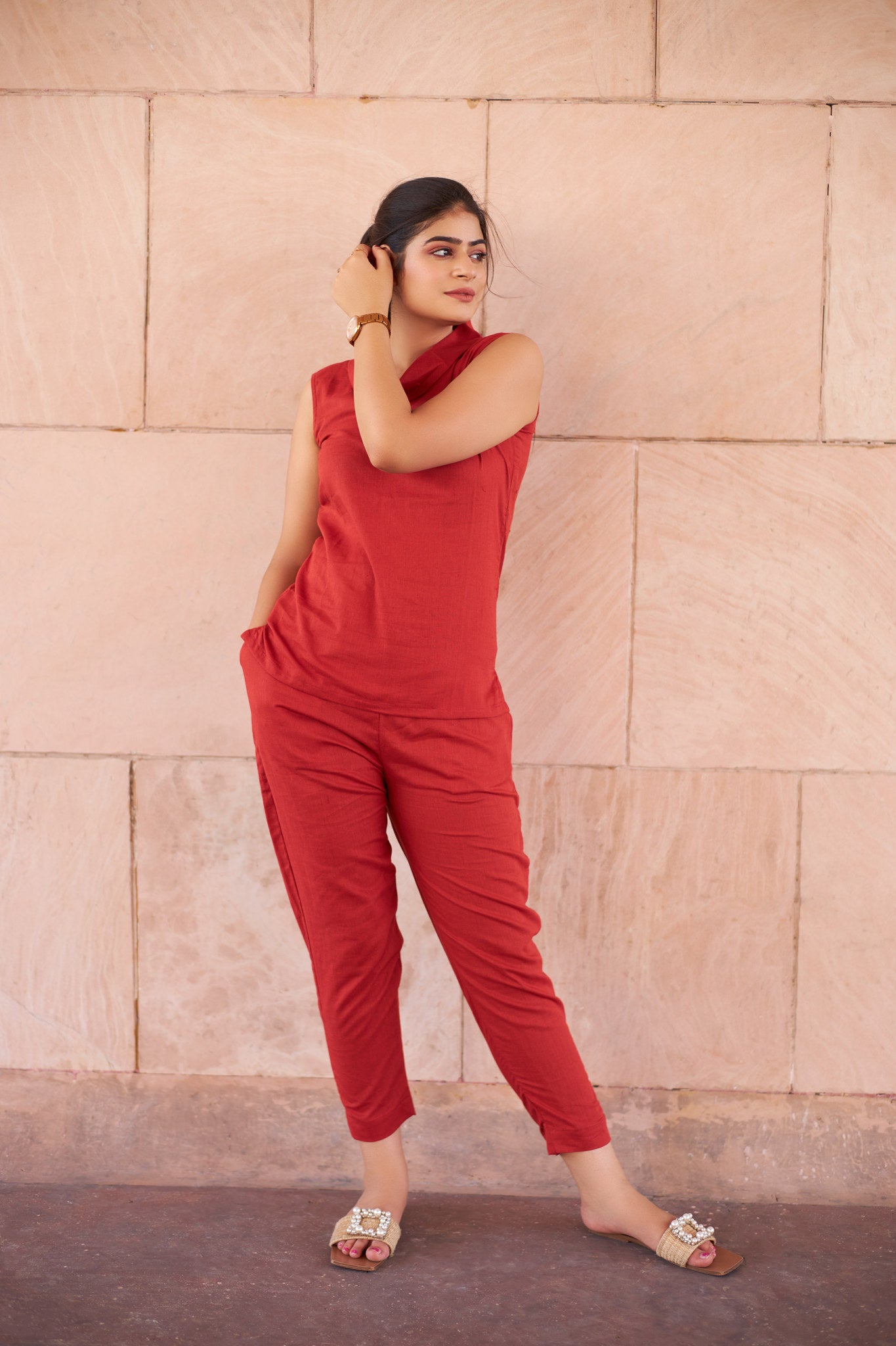 Red Linen Coord Set