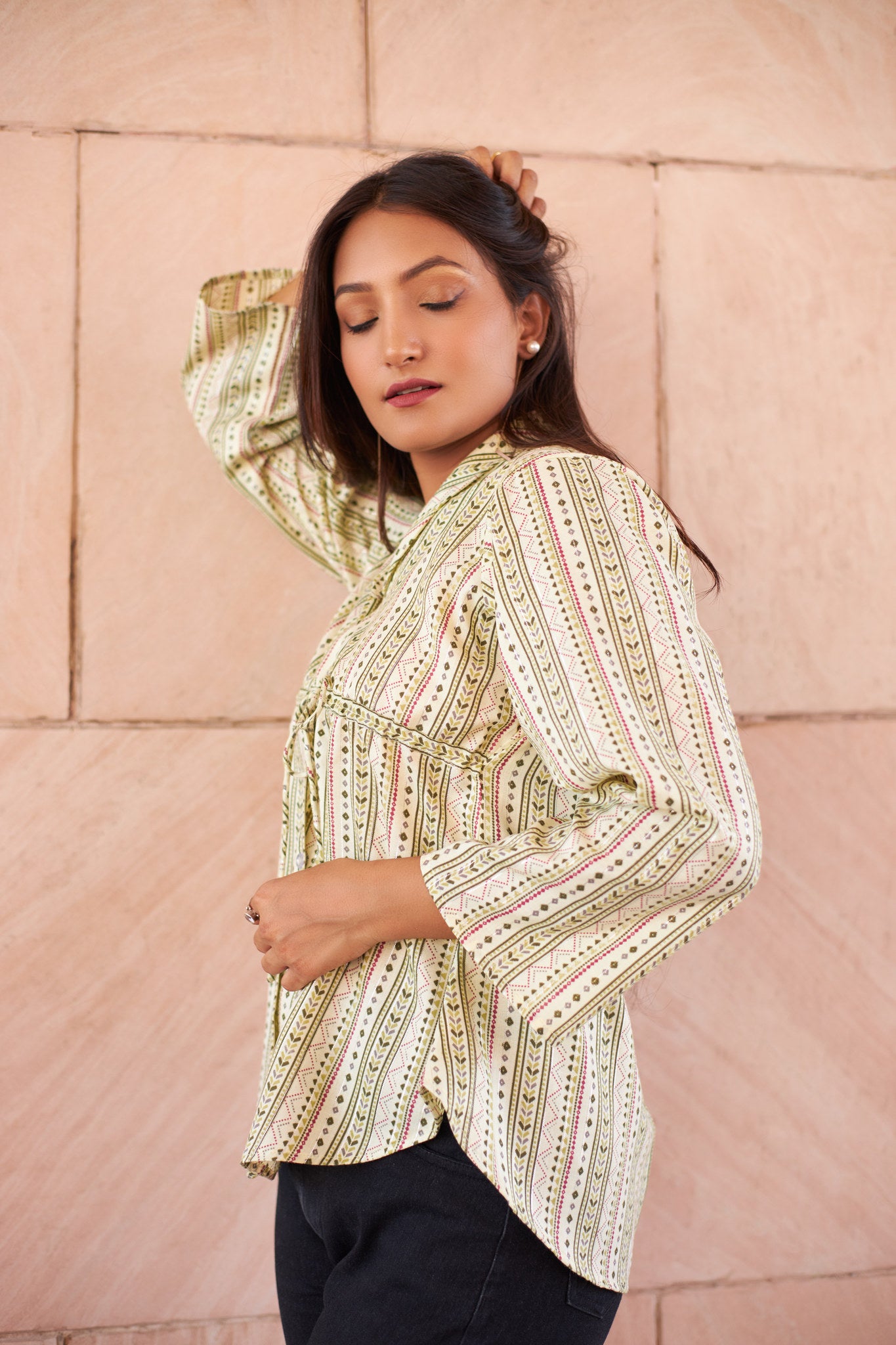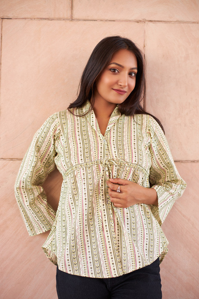 Printed cotton button down top